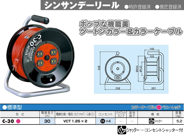 シンサンデーリール 30m C-30 コードリール 電源コード 電源 延長 ハタヤ(HATAYA) 【送料無料】