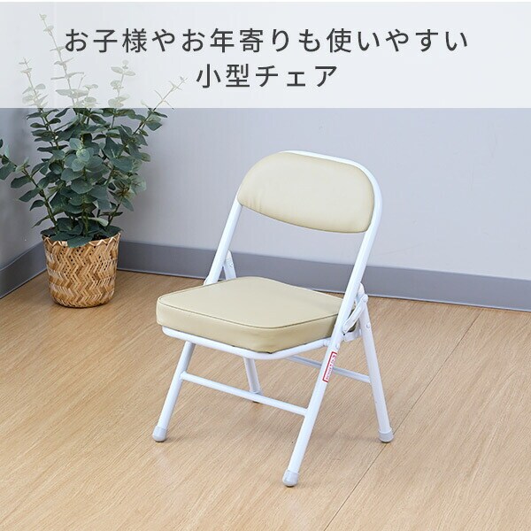 | 商品説明 | ●お子様やお年寄りも使いやすい小型チェア ●座りやすい厚みのあるクッション ●座面高さ:28.5cm ●座面サイズ:幅27×奥行27cm ●折りたたみサイズ:幅34.5×奥行8×高さ69cm ※カラー表記:IV(アイボリー)となっておりますが、ベージュに近いお色となります |