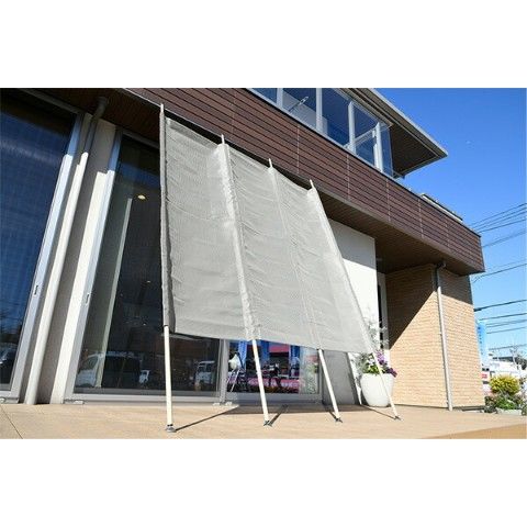 シェードの生地は高級感があり、全体的に作りがしっかりしているので立てかけても安定感があります。真夏の日差しを遮断してくれる上、家の中からは外が見えますが外からは中の様子が見えない生地なのもお気に入りです。購入して良かったです。