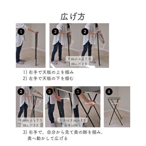 | 商品説明 | ●キッチンカウンターに合わせた高さ85cmタイプ ●下が空いて使いやすいオープン仕様 ●天板は熱いものも置けるステンレス張り ●天板耐熱温度: 約200℃ ●折りたたみ時は狭いところでも収納可 ●折りたたみ時サイズ: 幅5 奥行50 高さ97cm ●天板サイズ: 幅50 奥行40cm ●天板厚さ: 1.5cm ●天板下高さ: 約79.5cm ●天板耐荷重: 3kg ※2024年4月22日より天板をステンレス張りに、高さを70cmから85cmに変更しました。 |