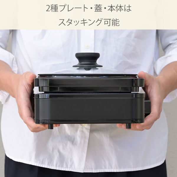 | 本体サイズ | 幅24.5×奥行23×高さ(波形プレート時)7 (鍋プレート時)14.5cm 重量(波形プレート時)1.2 (鍋プレート時)1.7kg |