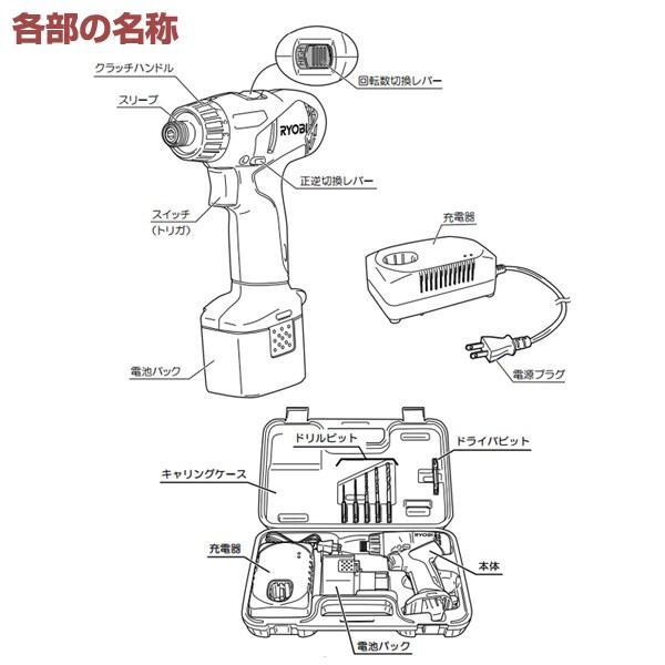 ●付属品:電池パック(B-7215)、充電器((BC-723)、キャリングケース、ドリルビット(2mm/3mm/4mm/5mm/6mm)、ドライバビット(No.2×65mm)