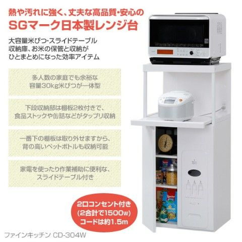 | エムケー精工(MK精工) 米びつ付き レンジ台 幅56.5cm 米びつ/30kg ファインキッチン CD-304W |