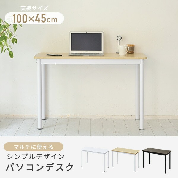 | 商品説明 | ●パソコンデスク、家事机、勉強机など、使い方広がるシンプルデスク ●天板はフラットタイプで、置く物のレイアウト自由自在 ●天板は水や熱に強く、傷がつきにくいメラミン樹脂加工 ●お部屋を広く使えるスリムな奥行45cmタイプ ●天板サイズ:幅100 奥行45cm ●天板下サイズ(アジャスター間):幅85 奥行31 高さ62.5cm ●天板耐荷重:80kg ※こちらの商品は、2022年11月よりカラーを変更しております |