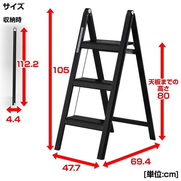 | 商品説明 | ●耐荷重:100kg ●収納時サイズ:幅47.7×奥行4.4×高さ112.2cm ●最大使用荷重:100kg ●天板高さ:80cm ●グットデザイン賞を受賞した薄型踏台 ●家具の隙間にもスッキリ収納できる厚さ44mmの薄型コンパクト設計 ●軽量でサビにも強いアルマイト加工を採用 |