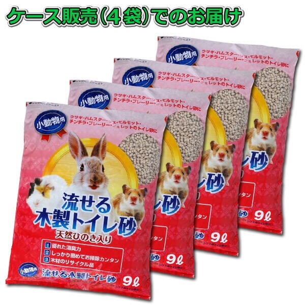 小動物用 流せる木製トイレ砂 9L×4袋 ハムスター モルモット フェレット リス うさぎ ウサギ おがくず おがくず トイレ砂 トイレに流せる ウッドペレット 常陸化工 【送料無料】