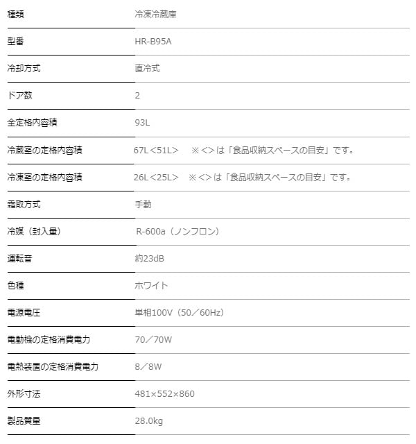 | ハイセンスジャパン(Hisense) 2ドア 冷凍冷蔵庫 93L (冷蔵室67L/冷凍室26L) HR-B95A |
