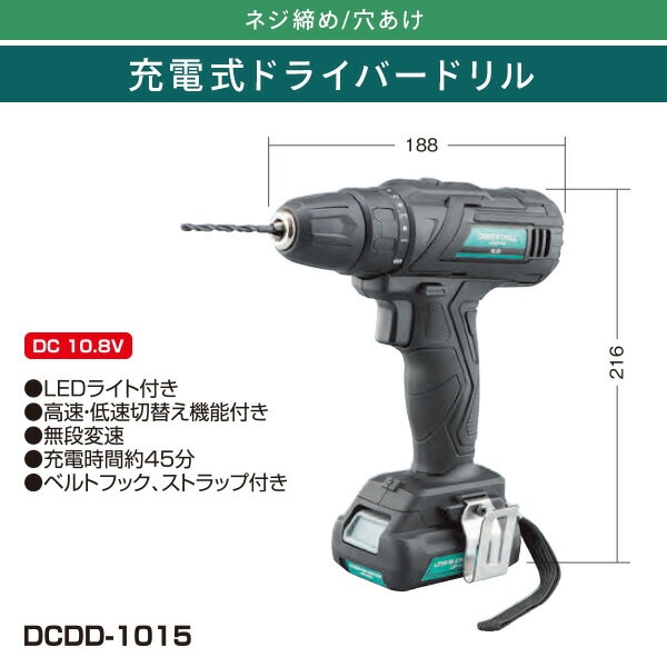 充電式ドライバードリル LEDライト ベルトフック付 DCDD-1015 ブラック ドライバードリル ドリルドライバ 電動ドライバ 電動ドリル DIY 電動工具 新興製作所 【送料無料】
