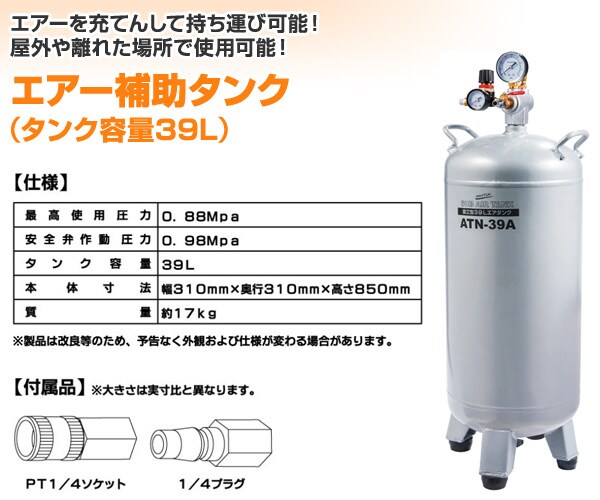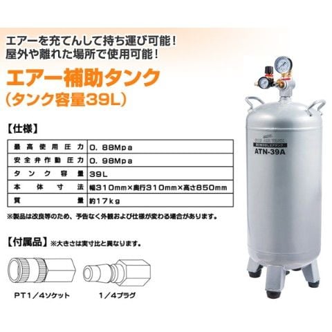 エアー補助タンク (タンク容量39L) ATN-39A 空気圧 補助 タンク 予備 サブ サブタンク エアーコンプレッサー 空気入れ ナカトミ(NAKATOMI) 【送料無料】