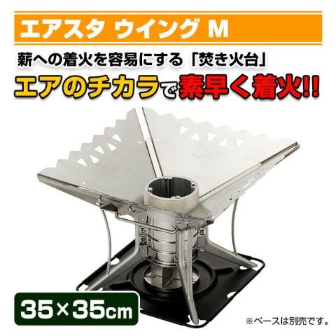| 商品説明 | ●エアの力で素早く着火!薪への着火を容易にする焚き火台 ●着脱式ウイングにより焚き火台の大きさを選べます ※ベースは別売です ●ベースに取り付けることにより幅35×奥行35cmの焚き火台に |