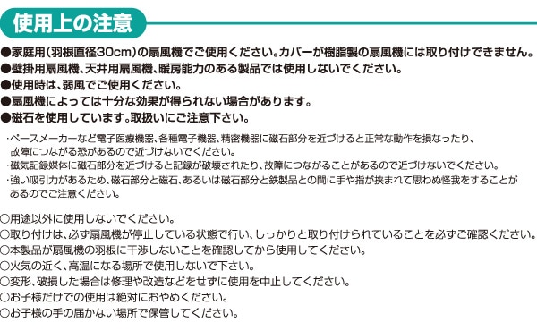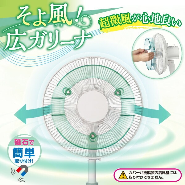 | 商品説明 | ●磁石で簡単取り付け ※カバーが樹脂製の扇風機には取り付け出来ません ●付けるだけで超微風 ●首振りなしでも風が広がる ●就寝時にも最適!そよ風のような心地よい風に ※家庭用(羽根直径30cm)の扇風機でご使用ください ※壁掛用扇風機、天井用扇風機、暖房能力のある製品では使用しないでください ●風を拡散させ、当たりのやさしい超微風を広範囲に! |