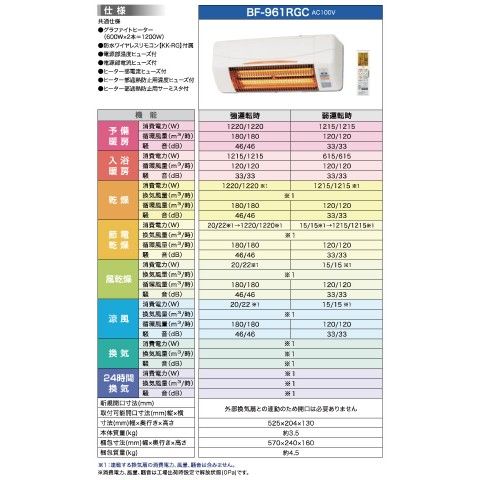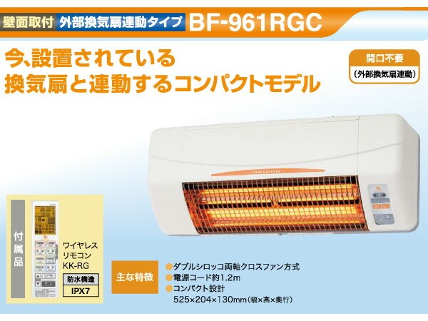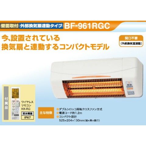 ヒーター 浴室換気乾燥暖房器具 (壁面取付タイプ・換気扇連動タイプ) BF-961RGC 浴室暖房 暖房 遠赤ヒーター 浴室 お風呂 浴室乾燥 暖房器具 衣類乾燥 換気 グラファイトヒーター 高須産業(TSK) 【送料無料】