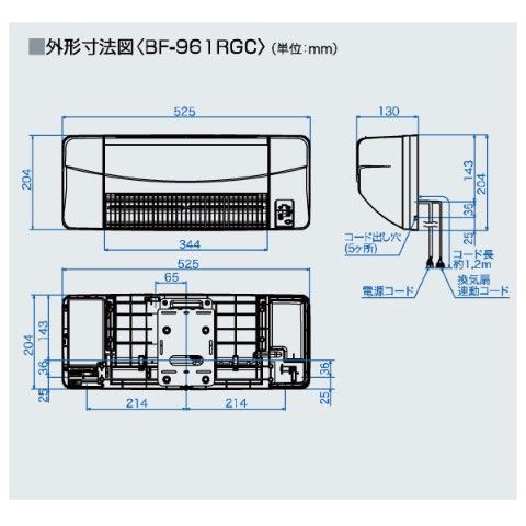 | 高須産業(TSK) 浴室換気乾燥暖房機 (壁面取付タイプ・換気扇連動タイプ) BF-961RGC |