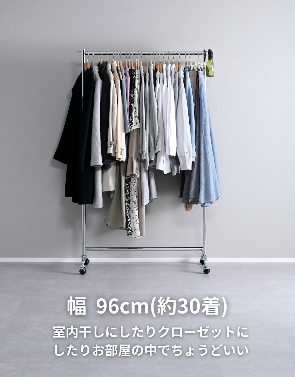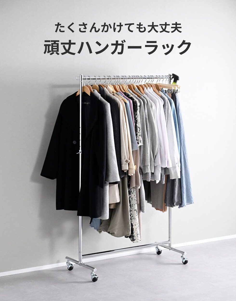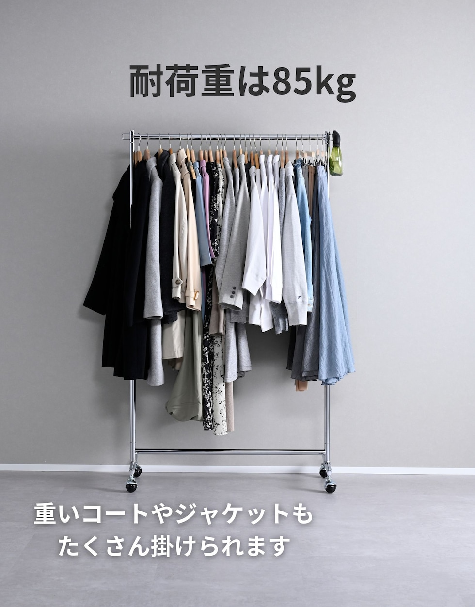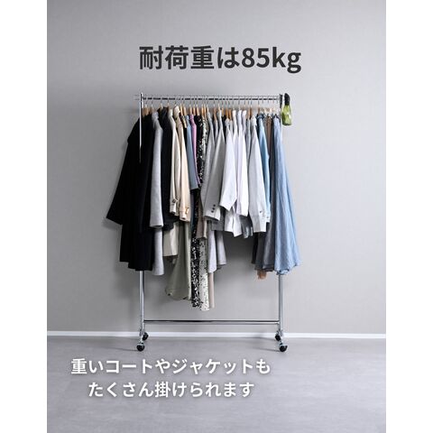 商品説明 ●耐荷重65kg、衣類をかけてもスムーズに動く、頑丈ハンガーラック