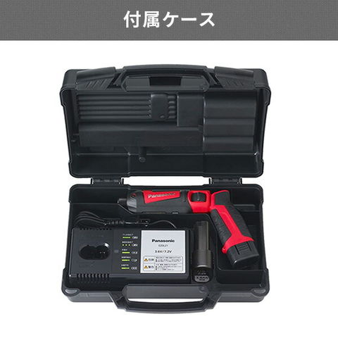 | パナソニック Panasonic 充電スティックインパクトドライバー7.2V LEDライト搭載( 電池パック×2個、充電器、ケース付) EZ7521LA2S-R レッド |