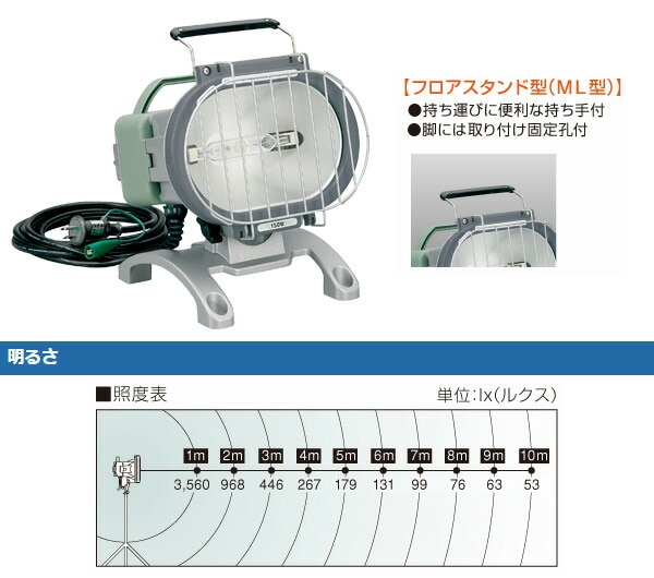 瞬時再点灯型150Wメタルハライドライト 5m電線付フロアスタンドタイプ ML105KH 投光器 照明 作業灯 照明用品 ワークライト ライト 工事用品 ハタヤ(HATAYA) 【送料無料】のレビュー