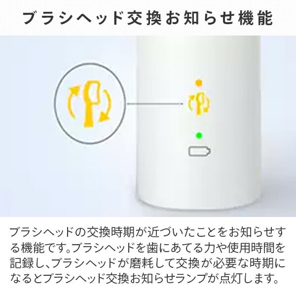 | 商品説明 | ●スリムで軽量、使いやすいベーシックな機能 ●音波水流で歯垢をしっかり除去 ●過圧防止センサー機能(当て方が強すぎるときにお知らせ) ●スマートタイマー機能(ブラッシング自動停止機能) ●カドペーサー機能(時間の区切りをビープ音でお知らせする機能) ●スリムで持ちやすいデザイン ●ブラシヘッド交換お知らせ機能 ●14回にかけて徐々にパワーを上げるイージースタート機能 ●USB充電式 ●セット内容:本体、ホワイトプラスブラシヘッド1本、充電器※電源アダプタは付属しません ●対応電圧:DC5V(USB Type A) ●ランプで充電池残量を表示 ●使用時間:約2週間 |