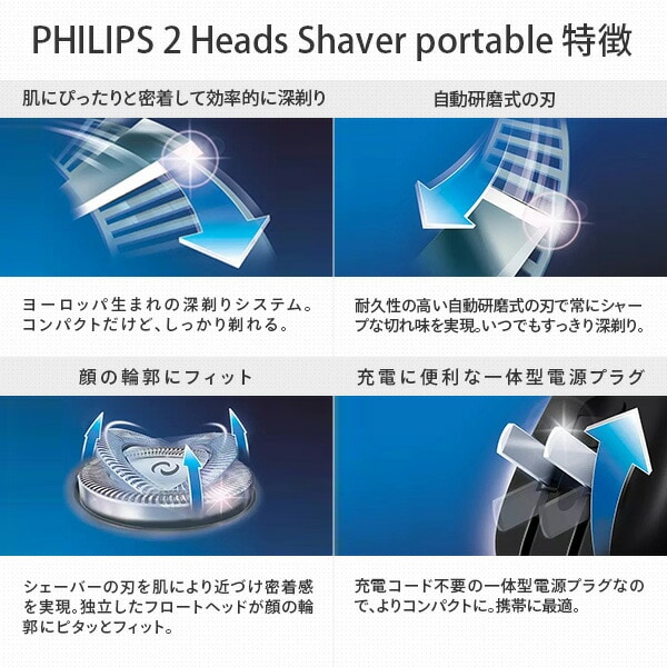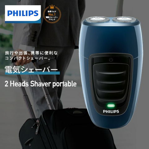 フィリップス ポータブルシェーバー 2ヘッドコンパクトシェーバー PHILIPS 2 Heads Shaver PQ190/16 ネイビー×ブラック 電動シェーバー 電気シェーバー メンズシェーバー ポータブル 携帯 小型 軽量 コードレス フィリップス PHILIPS 【送料無料】