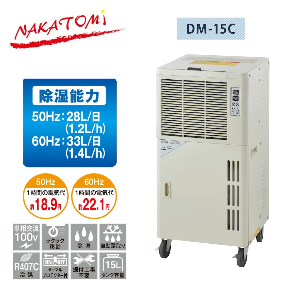 除湿機 温度制御付き 業務用 単相100V 全閉式 大型ドレンタンク容量15L 除湿能力最大33L キャスター付 直接排水 DM-15C 事務所用 除湿器 除湿乾燥機 室内 ナカトミ NAKATOMI 【送料無料】