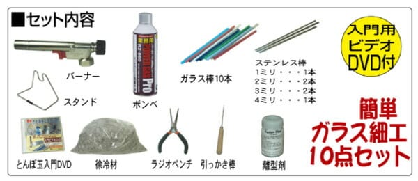 簡単ガラス細工 10点セット 簡単とんぼ玉 工作セット TD-100 ガラス細工 簡単 とんぼ玉 工作セット とんぼ玉製作 フルセット 新富士バーナー(Shinfuji Burner) 【送料無料】