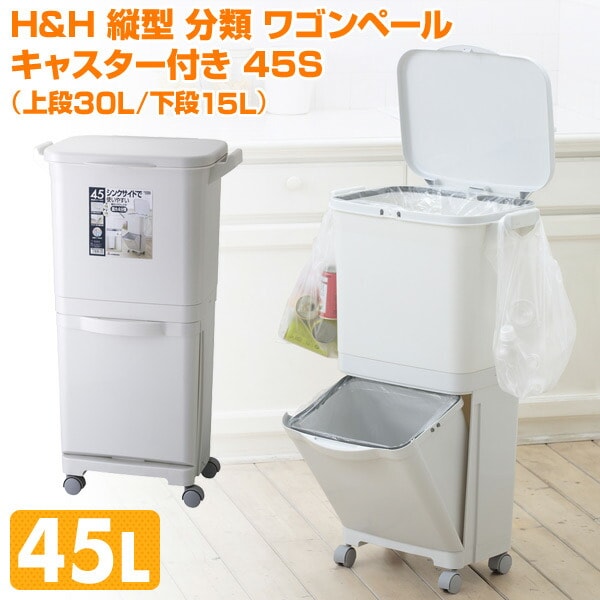 H&H 縦型 分類 ワゴンペール キャスター付き 45S (上段30L/下段15L) GBBE093 ゴミ箱 ごみ箱 ダストボックス 分別 おしゃれ ふた付き 蓋付き キッチンペール トラッシュボックス リス(RISU) 【送料無料】
