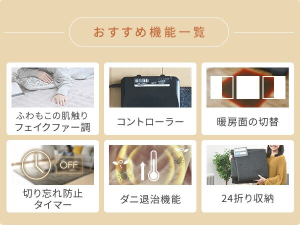 | 商品説明 | ●電源:AC100V (50Hz/60Hz) ●消費電力:600W ●消費電力量:(3)280Wh、(5)380Wh ●電気代目安(1時間あたり):(3)約8.7円、(5)約11.8円 ※電気料金目安単価31円/kWhを基に算出 ●電源コード長さ:約1.2m ●温度調節目盛:5段階 ●表面温度:(3)約36度、(5)約45度 ●暖房面切替機能付き(全面/左面/右面) ●フェイクファーカバー付き ●ダニ対策機能 ●こたつ使用可 ●6時間後切タイマー ●小さく折りたためるタイプ(24折り収納可能) ●節電モデル 従来品と比較し、最大約23%省エネ(旧品番YZF-304LEとの比較) ●メーカー保証1年付き ※こちらの商品は2025年9月に仕様変更をしております ・型番:YZLE-301→YZPH-300 ・カバー:フランネル調→フェイクファー仕様 |