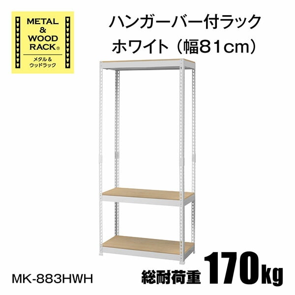メタル&ウッドラック ハンガーラック 棚付き 幅81 奥行41 棚3段 MK-883H スチールラック ラック シェルフ 棚 クローゼット ワードローブ ドリームウェア 【送料無料】