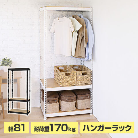 | ドリームウェア メタル&ウッドラック ハンガーラック 棚付き 幅81 奥行41 棚3段 MK-883H |