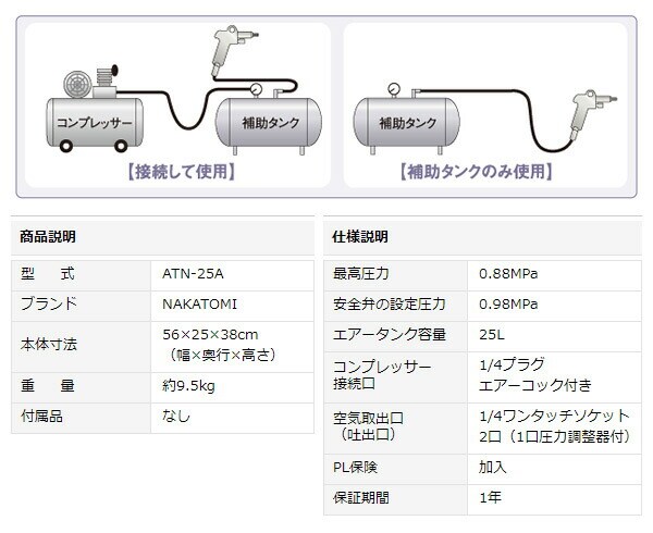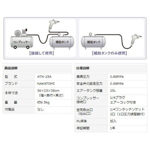 | ナカトミ(NAKATOMI) エアー補助タンク (タンク容量25L) ATN-25A |