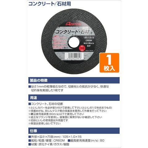 切断砥石コンクリート/石材用 1枚入り 105×1.0×15 CR60M 切断用品 切断砥石 砥石 切る といし 電動工具 作業用品 レヂトン 【送料無料】