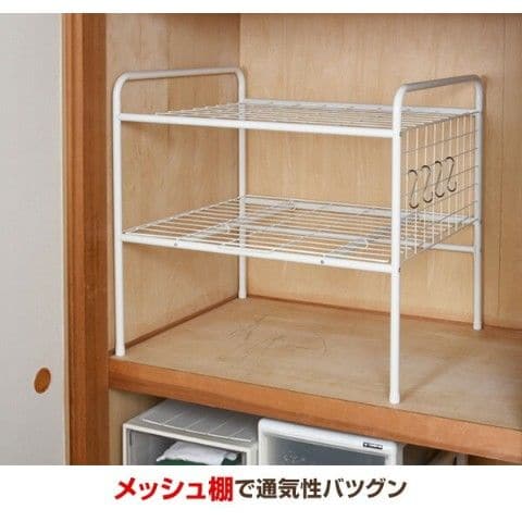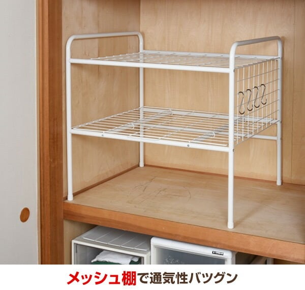 | 商品説明 | ●クローゼットや押入れの中をすっきり区切る、スチール製整理棚 ●下段の棚板は手前に引き出せるスライド式 ●棚板は、通気性の良いメッシュ ●サイドネットは組立て時に、左右選択可能 ●S字フック4個付属 ●メッシュ棚内寸:(上段) 幅75 奥行70cm、(下段) 幅76 奥行72cm ●床から下段:高さ33cm ●下段から上段:高さ30.5cm ●フレーム間:幅77.5 奥行70cm ●耐荷重:天板20kg、スライド棚10kg、全体30kg |