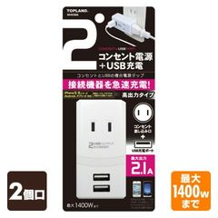 スマホ・タブレット充電ができる木目調コード付きタップ 1.5m コンセント2口 USBポート2口 急速充電2.4A 合計1400Wまで M4020-DW 電源 たこ足 タコ足 2口タップ 2個口タップ トップランド TOPLAND 【送料無料】