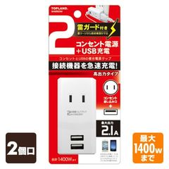 | トップランド(TOPLAND) スマホ・タブレット充電ができる木目調コード付きタップ 1.5m コンセント2口 USBポート2口 急速充電2.4A 合計1400Wまで M4020-DW |