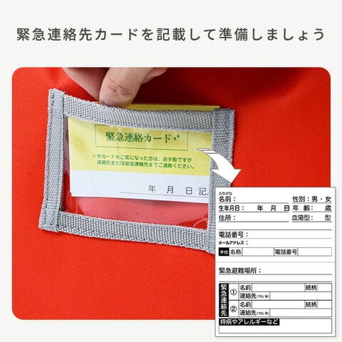| 商品説明 | ●セット内容:リュックサック、防災頭巾、2WAY懐中電灯、ポンチョ、アルミブランケット、ホイッスル、携帯トイレ×3個、ポケットティッシュ×2個、歯ブラシ×3本、予備袋 |