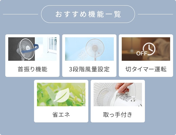 | 商品説明 | ●電源:AC100V(50/60Hz) ●消費電力:31W/35W(50/60Hz) ●電気代目安(1時間あたり):約1.0円/1.1円(50/60Hz) ●電源コード長さ:約1.6m ●羽根:直径30cm・5枚 ●切タイマー:3時間 ●風量切替:3段階 ●左右自動首振り ●押しボタン式 ●メーカー保証:1年間 ※2025年2月より型番をYMT-S301→YME-T30に変更しております。型番変更にともないデザインを変更しております。仕様の変更はございません |