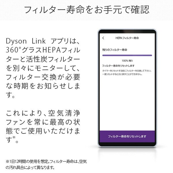 | 商品説明 | ●電源:AC100V(50/60Hz) ●定格消費電力:3 W/ 56W(最小/最大) ●待機電力:0.5W未満 ●首振り機能:約70度 ●タイマー:15, 30, 45分 / 1-9時間 ●空気清浄適用床面積:9畳(30分) 26畳(60分) ●ブラシレスDCモーターを使用 ●コードの長さ:1.8m ●季節を問わず、空気清浄機やサーキュレーターとして使用でき、夏にはスムーズな風を遠くまで送り出す扇風機として使えます ●自動でモニター、反応、清浄し、お手持ちのスマートフォンのDysonLink アプリにお知らせします。 ●静音運転に切り替え、LEDディスプレイを減光します ●お手入れが大変なカバーや羽根がありません |