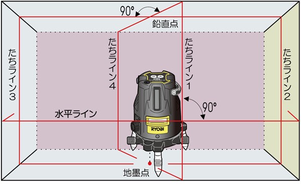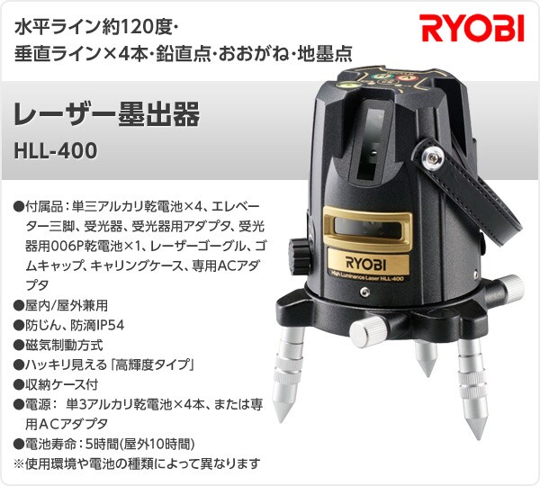 | リョービ(RYOBI) レーザー墨出器 (水平ライン約120度/垂直ライン×4本/鉛直点/おおがね/地墨点) HLL-400 |