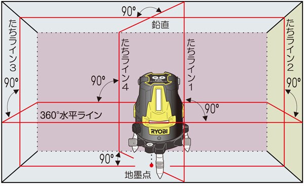 | リョービ(RYOBI) レーザー墨出器 (フルライン約360度/垂直ライン×4本/地墨点) HLL-700 |