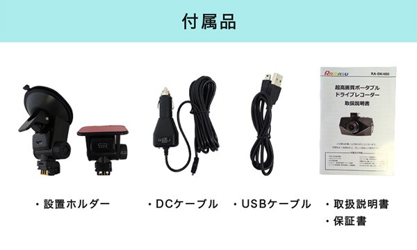 ●付属品:設置ホルダー、DCケーブル 2USB(12V、24V対応)、USBケーブル、取扱説明書(保証書付き)