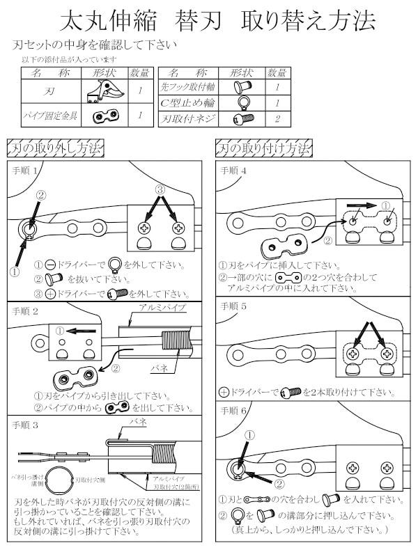 | 材質 | 刃:刃物鋼、パイプ:アルミ合金 |