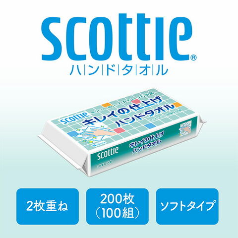 スコッティ キレイの仕上げ ハンドタオル 200枚(100組)×60パック ペーパータオル 手拭き タオル ティッシュペーパー 厚手 大きめ ソフト トイレ 洗面所 手洗い 使い捨て 消耗品 日用品 まとめ買い ケース販売 備蓄 日本製紙クレシア 【送料無料】
