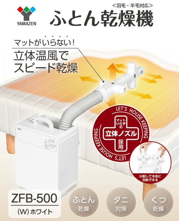 ふとん乾燥機 (マット不要) 羽毛/羊毛対応&布団乾燥機アタッチメント (カラッと!乾カシーナ)セット ZFB-500(W)-E/KWKS-N 布団乾燥機 ふとん乾燥機 フトン乾燥機 山善 YAMAZEN 【送料無料】
