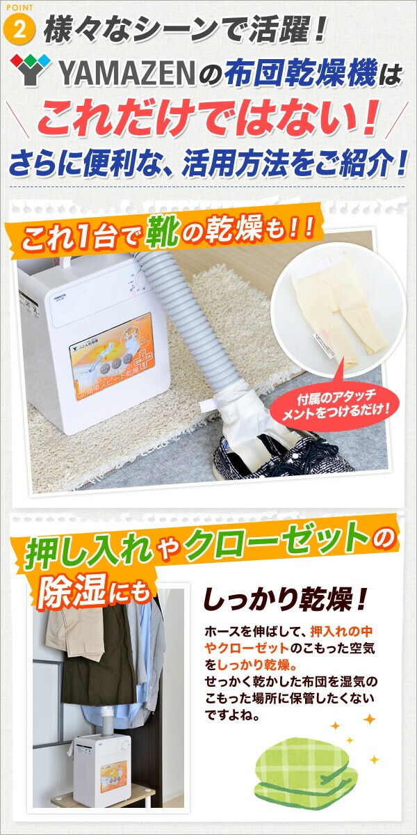 YAMAZEN ヤマゼン 山善 通販 布団乾燥機 マット不要 ふとん乾燥機 フトン乾燥機 衣類乾燥 梅雨 秋雨 くつ乾燥 靴乾燥 シューズ乾燥 ブーツ乾燥 ドライヤー 花粉 湿気 蒲団乾燥機 シューズドライヤー くつドライヤー ダニ対策 ダニ退治 除湿 部屋干し 室内干し 羽毛 羊毛 カーテン 結露 結露防止 セット 乾カシーナ 結露対策 アタッチメント 52904(33301/36173) |