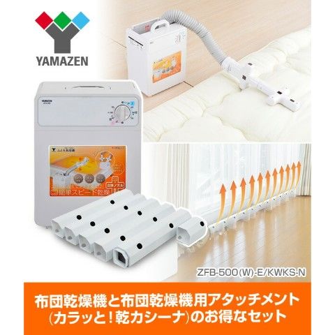 | 山善(YAMAZEN) ふとん乾燥機 (マット不要) 羽毛/羊毛対応&布団乾燥機アタッチメント (カラッと!乾カシーナ)セット ZFB-500(W)-E/KWKS-N |