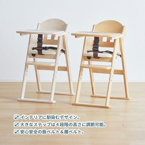 | 商品説明 | ●使用年齢:生後7ヶ月頃から60ヶ月まで ●大きなステップは成長に応じて4段階の高さに調節可能 ●コンパクトに折りたたみ可能 ●折りたたみサイズ:幅46×奥行29×高さ92.5cm ●厚みのある座面クッション付き ●安心安全の股ベルト&腰ベルト付き ●テーブル付き ●テーブルサイズ:幅45×奥行26cm ●テーブルは後ろに回してなしでも使用可能 ●インテリアに馴染みやすい2色展開 ※ホワイトの色味について 木材の質感を活かした木目の見える塗装を採用 (クリーム色に近いです) ※こちらの商品は、2025年9月24日より下記変更をしております 型番:22416/22417→22527/22528 原産国:タイ→ベトナム ホワイト:木目が見える塗装に変更 ベルト、クッションのカラー変更 |