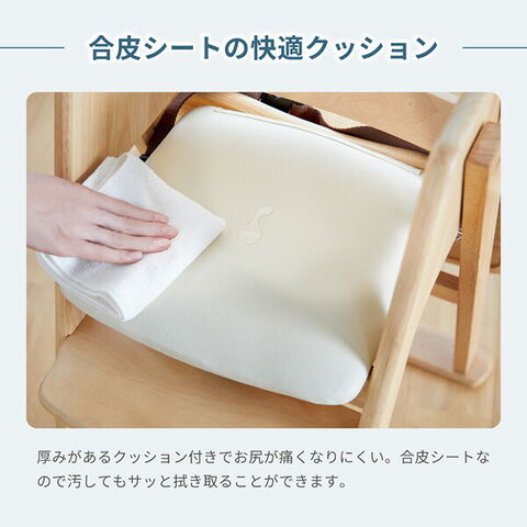 | 材質 | 本体:ラバーウッド、PVC ベルト:ナイロン シート:(貼り材)合成皮革、(クッション材)ポリウレタンフォーム |