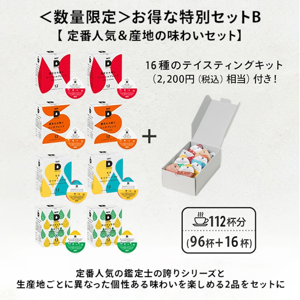 UCC DRIP POD ドリップポッド カプセル 数量限定 特別セット テイスティングキット付き 計112杯分 鑑定士の誇り スペシャル リッチ グァテマラ ホンジュラス モカ キリマンジャロ アイスコーヒー 炭焼珈琲 専用カプセル UCC 上島珈琲 【送料無料】