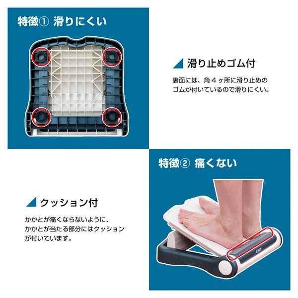 ●ボードの上に乗るだけで下腿部や大腿部などの体の裏面の硬くなった筋肉をストレッチしてほぐす