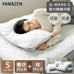 | 山善 YAMAZEN 敷きパッド ボックスシーツ 接触冷感 一体型 シングル 枕パッド セット Q-MAX0.5 S 枕パッド セット |