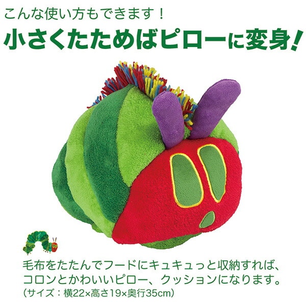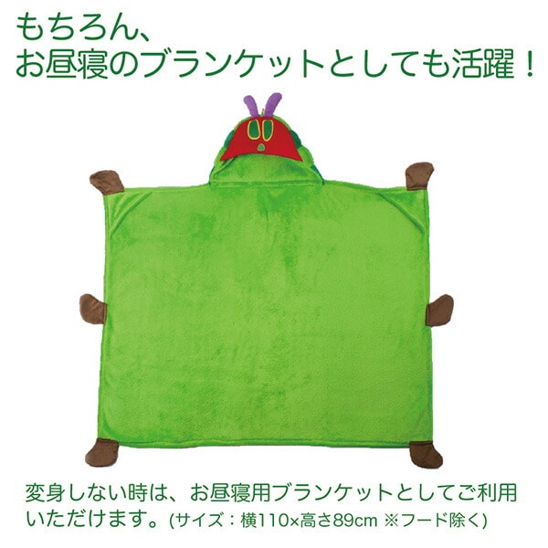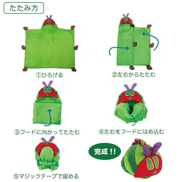 | 商品説明 | ●かぶって遊んであおむしに変身 ●ふわふわやわらかい手触りで気持ち良いブランケット ●くるっと丸めて枕にもなります ●あおむしの顔がフードに |